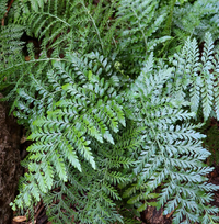 Austral Gem Bird's Nest Fern: Evergreen sterile clumping and compact fern to 20" tall x 24" wide with dark green, glossy, feathery fronds. Medium water, easy to grow indoors or out. Part shade to shade. Non toxic to pets. Seacoast tolerant. Rabbit resistant.