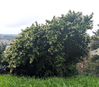 Snow Flurry Ceanothus: Fast growing CA Native shrub or small tree to 10' tall x 12' wide or larger. Large, glossy leaves and pure white, 2-3" long flower clusters in spring. Birds, bees and pollinator favorite. Good for cut flowers. Full sun to part sun. Low to medium water. Seacoast, wind, clay, sand, heat, and drought tolerant once established. Deer, gopher, rabbit and fire resistant.