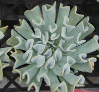 Mexican Hen and Chicks: Evergreen perennial succulent forming uniquely twisted compact icy blue rosettes 10-12" tall, and bell shaped orange flowers. Good for cut flowers. Attracts hummingbirds, bees and pollinators. Great in containers. Full sun. Low water. Seacoast, wind, heat, sand, and drought tolerant. Deer, rabbit, gopher and fire resistant.