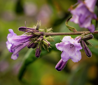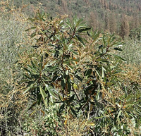 Yerba Santa: CA native evergreen shrub 3–5' tall and wide with aromatic, sticky, dark green, leathery leaves and fragrant white to pale lavender flowers in spring. Traditional herbal uses include soothing sore throats and more. Attracts hummingbirds, butterflies, bees, and pollinators. Good for containers and dry gardens. Full sun to part shade. Low water. Heat, wind, clay, sand, and drought tolerant once established. Deer, gopher, rabbit and fire resistant.