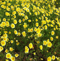 Tidy Tips: CA Native annual herb 6-12" tall and wide. Can reach 24" tall with fertile soil and regular water. Bright yellow-gold flowers with white tips in spring. Attracts butterflies, bees, and pollinators. Great for containers. Full sun. Low water. Seacoast, wind, sand, clay, heat, and drought tolerant once established. Deer and rabbit resistant.