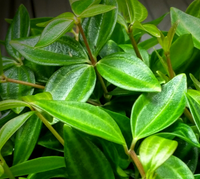 Beetle Peperomia: This attractive tailing form of perperomia has oval shaped, small bright green leaves with subtle stripes. Pet friendly. Easy to grow. Maintain steady temperature and keep away from drafty areas. Best in indirect bright light. Has whitish colored, long, narrow, spadix flowers.