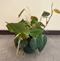 Evergreen vining houseplant with brilliant foliage. Easy to grow. Medium water and bright indirect light.