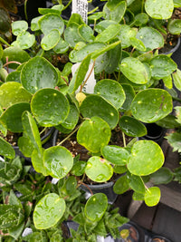 Chinese Money Plant: Evergreen succulent with round green leaves. Allow soil to dry between watering. Prefers bright, indirect light.