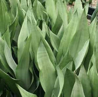 Silver Snakeplant: Broad 3-4" wide x 2' long leaves that are a light silvery-green color with faint longitudinal lines and a narrow dark green margin. It will tolerate low light levels, where it turns a darker green color but grows best with a little more light. May produce cream colored flowers and orange berries in bright light or morning sun. Protect from cool temperatures.