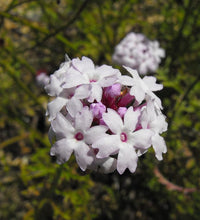 Pink Cedros Island Verbena: A tidy growing herbaceous sub-shrub with mounding habit to 2'- 3' tall x 4' to 5' wide with dissected foliage and clusters of fragrant light pink star-shaped flowers. Blooms most of the year with a peak in spring and summer. Full to part sun. Low water needs, monthly water is advised. Great in containers. Attracting bees and butterflies. Full to part sun.
